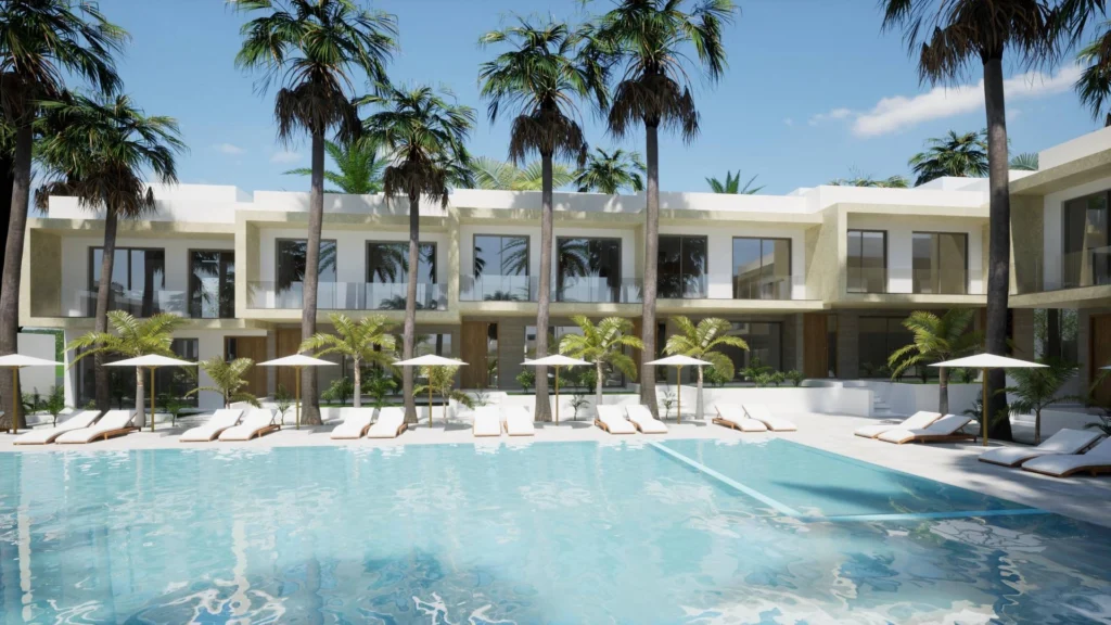 Modern two-storey villas (2-4 bedrooms) with sea views are offered for sale in a new residential complex located in the Agios Athanasios area of Limassol. The project covers an area of 8,270 m2, and the total built-up area is 4,045 m2. It consists of 9 2-bedroom houses and 26 3-bedroom houses. The complex has a 200 m2 communal swimming pool with a 587 m2 recreation area, parking and a public green area. The complex is located next to two famous international schools Foleys School and Grammar School, large supermarkets, banks, restaurants and pharmacies. The beach is only 1.5 km away.