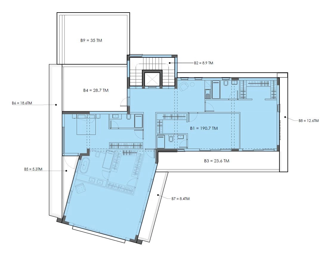 Nestled on five generous 955 – 1,116 sq.m. plots, spacious three-level villas with stunning panoramic sea views epitomize luxury living. The covered areas range from 800 to 1000 sq.m.