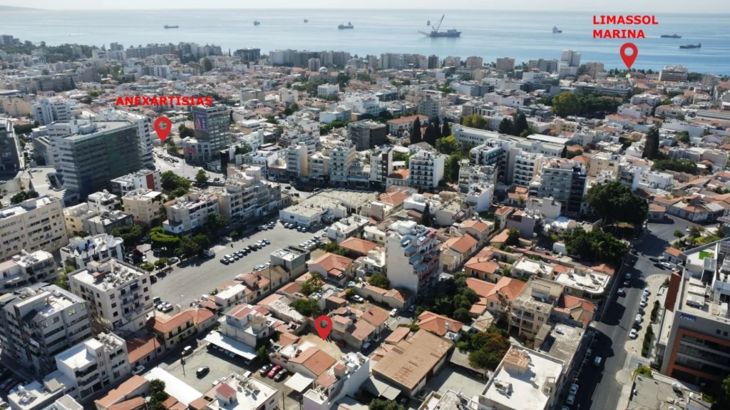 Located just 100 m from Anexartisias Street and 800 m from the beach, Limassol Marina, Molos, and the tourist area, this 193 m² plot sits on a quiet road in Agia Zoni. With 160% building density and 70% coverage, it allows for at least 310 m² of covered areas, with room for potential increases.