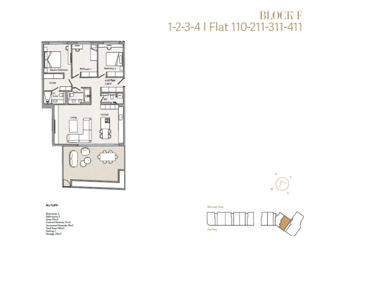 Spanning a generous 155 m² total area, the apartment features bright, spacious interiors with a seamless open-plan layout. The contemporary kitchen, designed with premium Italian finishes and a stylish island, flows effortlessly into the living area and expansive veranda—perfect for entertaining or relaxing while enjoying panoramic south-facing views.