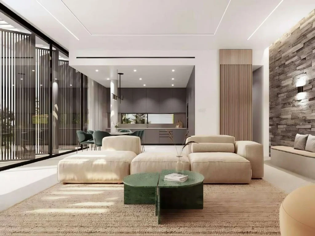 House for sale in the area of Pegeia, Paphos. Built using advanced technology and environmentally friendly materials, this house embodies the dream of modern living. The exterior walls are made of innovative materials that provide excellent thermal insulation and aesthetic appeal due to their unique shade and texture. Panoramic windows allow residents to enjoy stunning views and let in natural light, enlivening the interior. In addition, there is a roof garden of 87 m2 with sea views, a barbecue area and a Jacuzzi.The house has an open-plan kitchen and living room, 4 bedrooms with walk-in closets, 5 bathrooms and a guest toilet, a cinema room, 2 laundries. There is a sauna and a gym. Photovoltaic panels, a Smart Home system, and motorized aluminum screens are installed. The plot has a panoramic swimming pool, parking for 2 cars. This house is a real gem above the hills of Peyia.
