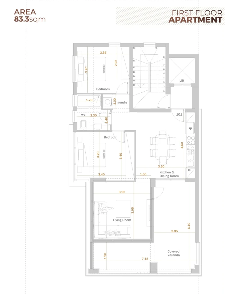 This exquisite two-bedroom apartment is part of a boutique development comprising only three contemporary residences, offering privacy, high-end living, and exceptional design in the heart of Limassol’s vibrant tourist area—just 110 meters from the beach.