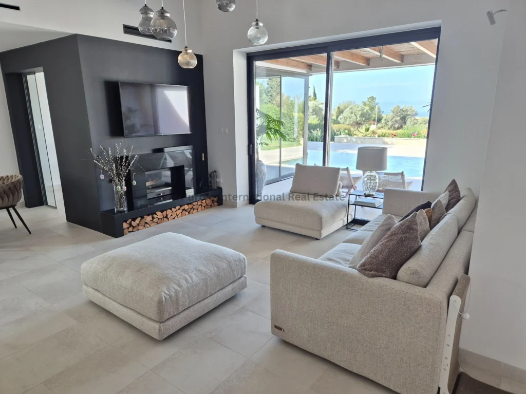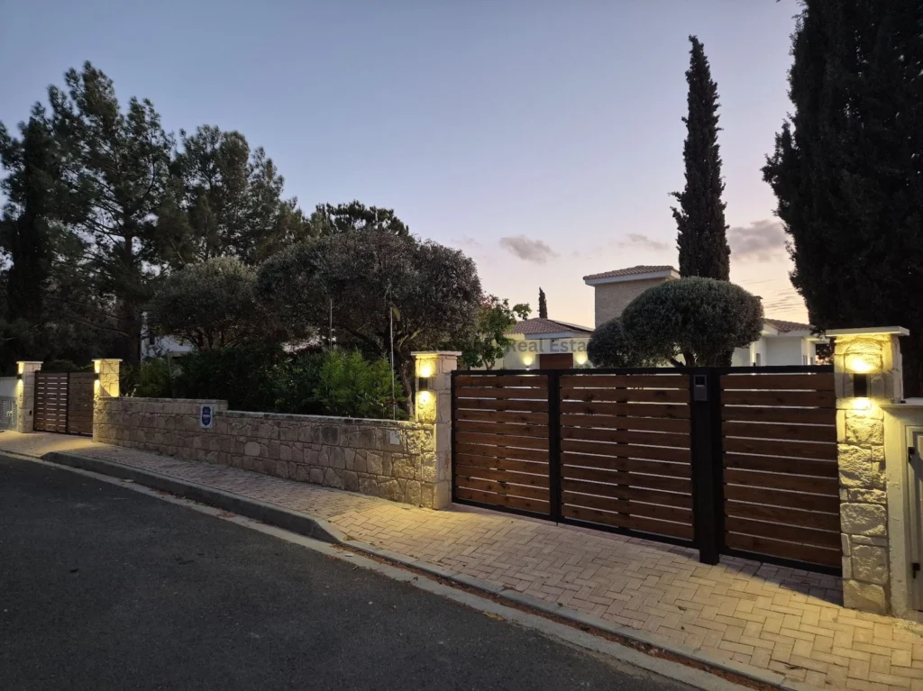 Located in a quiet cul-de-sac on the exclusive Eastern plateau of the Aphrodite Hills Resort, the entire property is surrounded by lush mature gardens with beautiful olive trees, cypresses, pine trees, a fruit garden and tall bay-leaf hedges to ensure complete privacy.