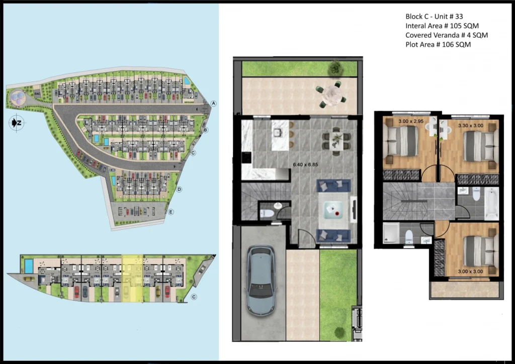 Each unit has a spacious open-concept layout with-custom made kitchen cabinets, built-in wardrobes in each bedroom, large double-glazed windows, covered verandas, guest W/C and much more. The gated community project provides maximum privacy and security to its residents with a controlled gate access.