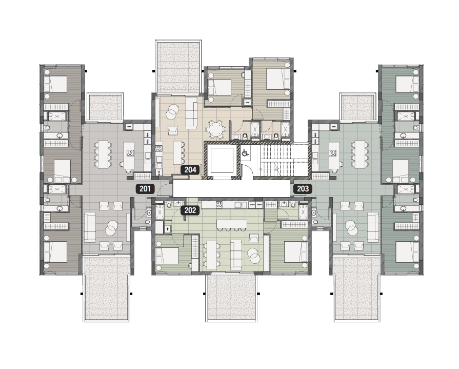The apartment features a spacious open-plan layout with 4-meter high ceilings, large windows, and seamless integration of indoor and outdoor living. Equipped with underfloor water-based heating and a built-in VRV air-conditioning system, it ensures an ideal climate year-round.