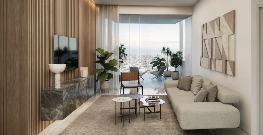 This luxurious three-bedroom apartment is part of a prestigious residential complex located in the heart of Limassol’s tourist area, just 500 meters from the sandy shores of Dasoudi Beach. Surrounded by landscaped greenery and thoughtfully designed for privacy, the complex offers a refined living experience with a strong emphasis on comfort, security, and quality.