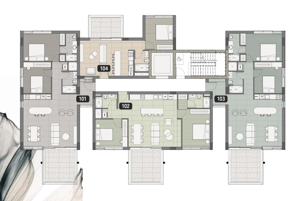 The apartment features a spacious open-plan layout with 4-meter high ceilings, large windows, and seamless integration of indoor and outdoor living. Equipped with underfloor water-based heating and a built-in VRV air-conditioning system, it ensures an ideal climate year-round.