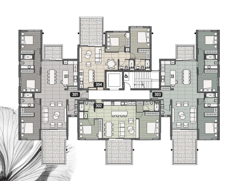 The penthouse features a spacious layout with impressive 4-meter-high ceilings, a private rooftop garden with a swimming pool, and a comfortable lounge area offering city views. High-quality finishes, a built-in VRV air conditioning system, and underfloor water-based heating ensure a refined living experience.