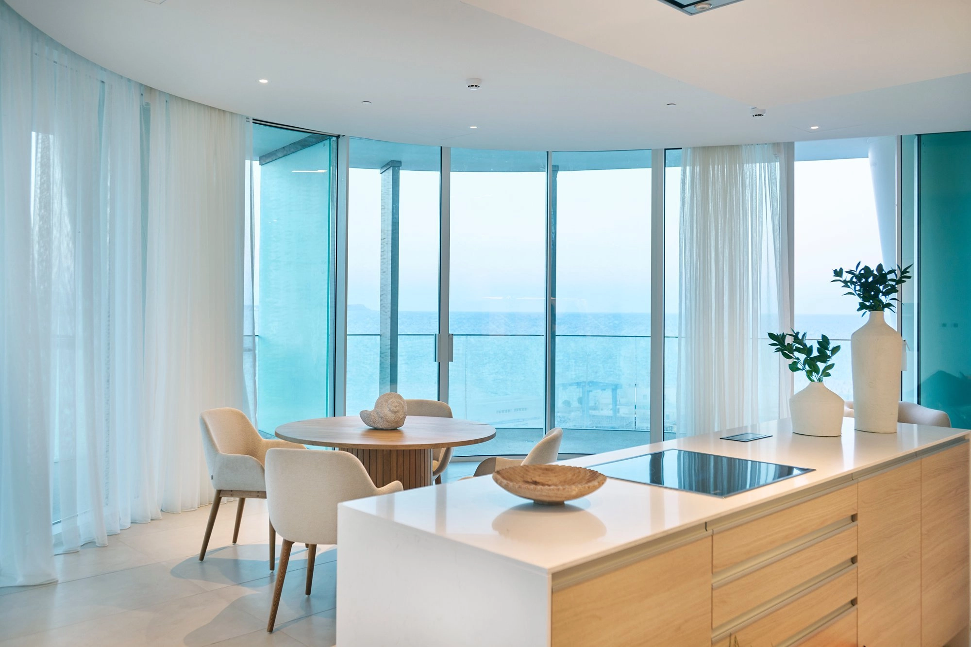 This stylish one-bedroom apartment is located in a landmark residential tower at the heart of a vibrant marina development. Designed for luxurious coastal living, the apartment features open-plan interiors, full-height glass doors, and a spacious covered veranda that seamlessly blends indoor and outdoor spaces.