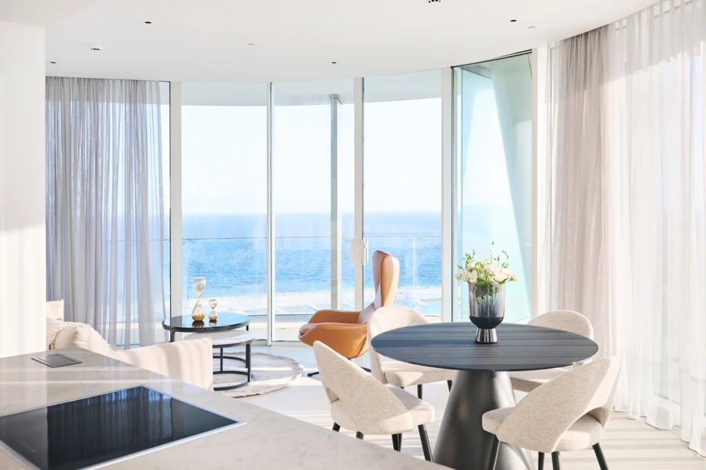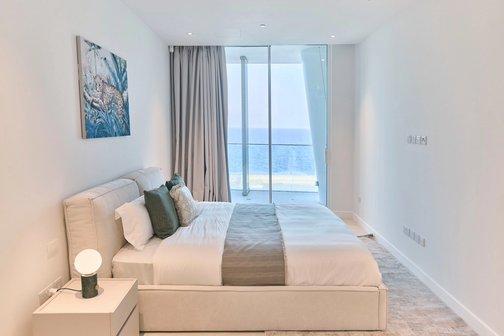 This stylish three-bedroom apartment is located in a landmark residential tower at the heart of a vibrant marina development. Designed for luxurious coastal living, the apartment features open-plan interiors, full-height glass doors, and a spacious covered veranda that seamlessly blends indoor and outdoor spaces.