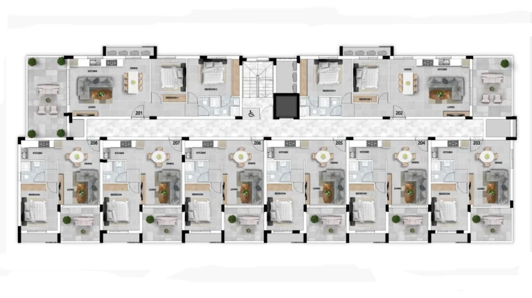 It will consist of 1-, 2- and 3-bedroom apartments and penthouses, with spacious verandas, which promise their residents moments of relaxation and comfort. This beautiful complex has a swimming pool exclusively for the owners.