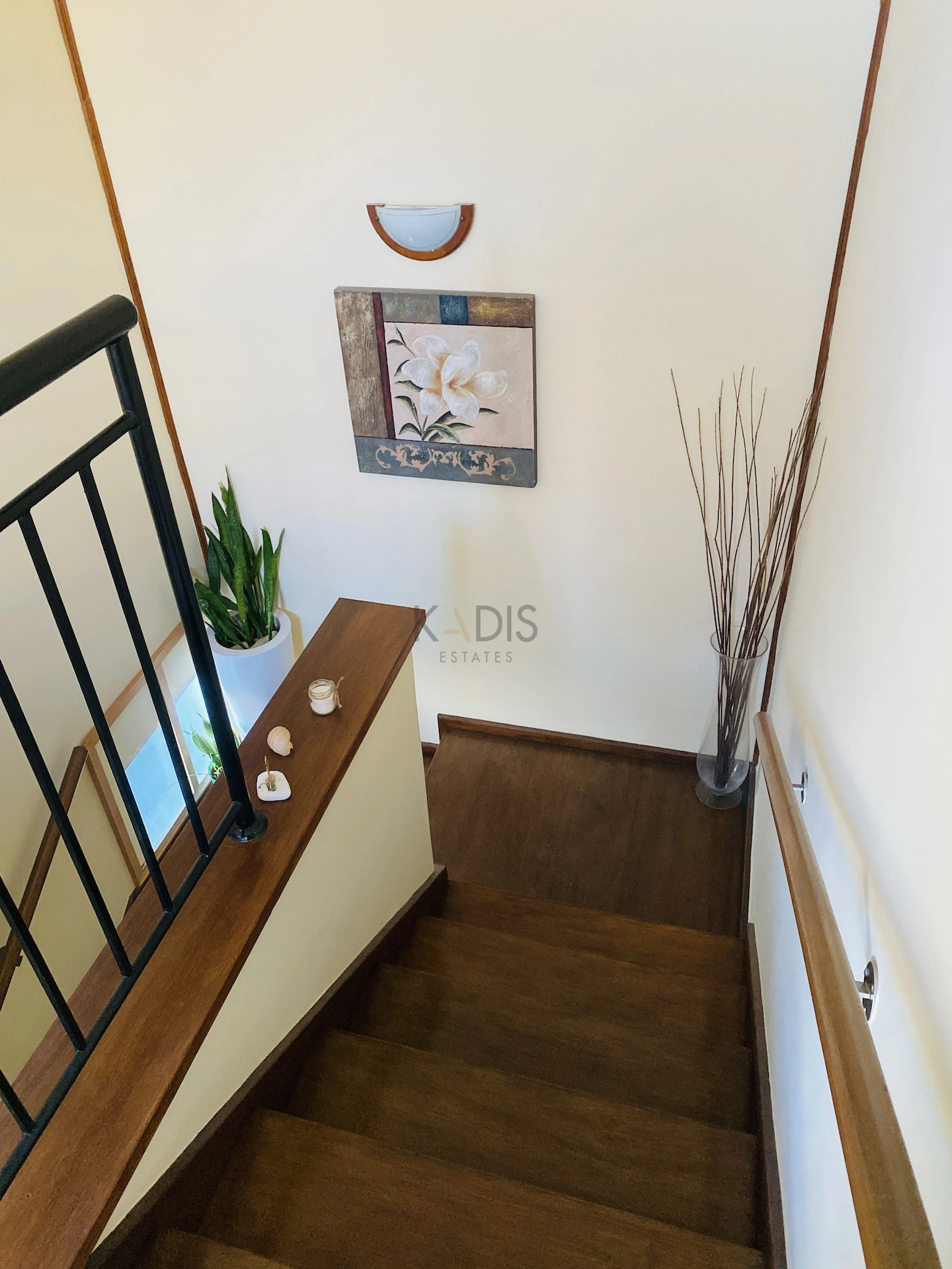 Ground floor: open plan kitchen dining living room, extra kitchen,storage room,guest wc,extra room for guest or office used, 2 big verandas,one with pergola.