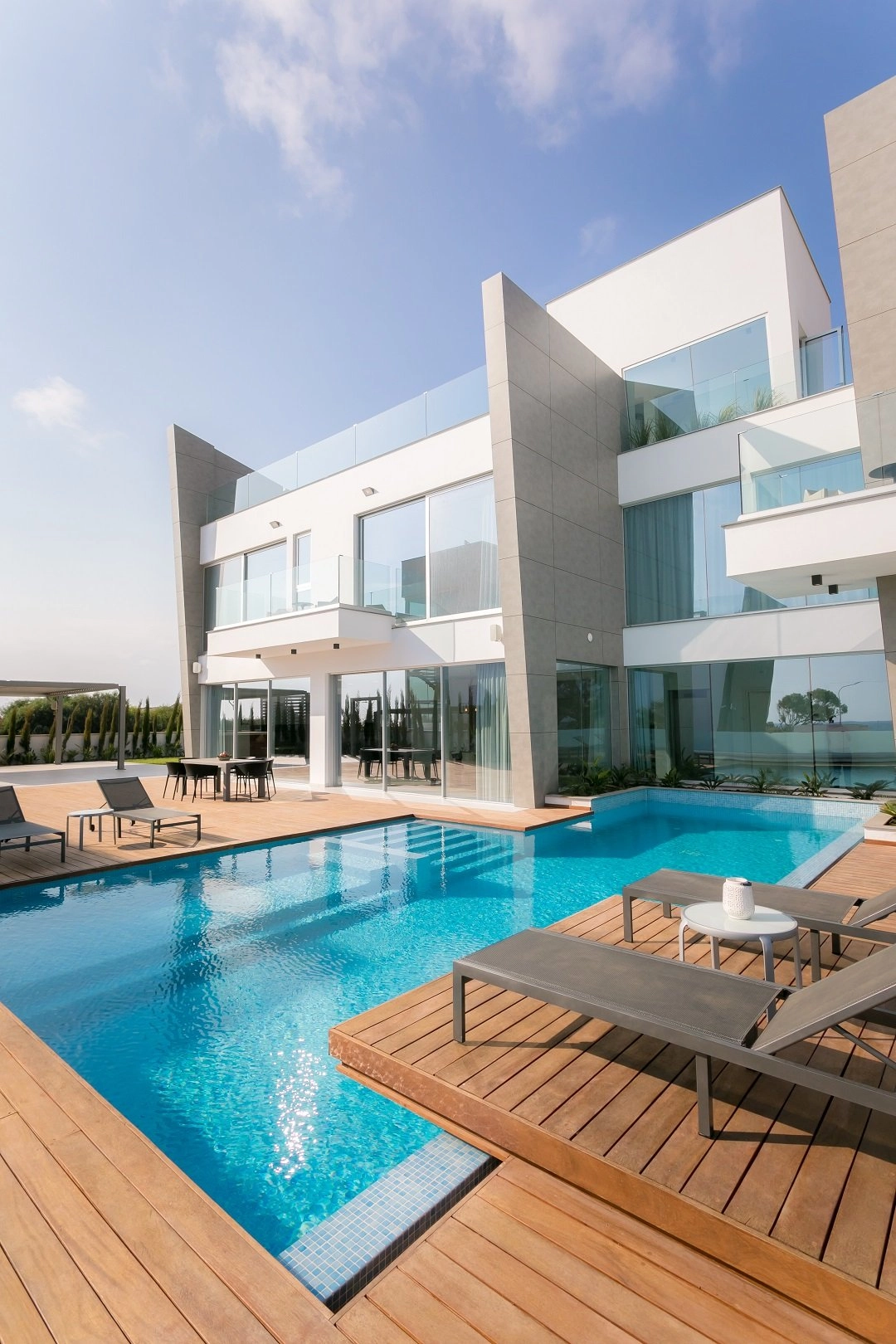 The property is located in a residential development where modern design blends with the ocean’s timeless beauty. One of the six stunning homes that make up the development, each at their own vast unique plots, the villa is one of the six eye-catching villas that overlooks the turquoise waves at Cape Greco, around 150 meters from the sea. Modern architecture combines aesthetic lines with practicality and makes use of premium finishing materials. The ultimate result is a luxury island design that is modern, bright, and crisp and is suitable for 21st-century luxury living.