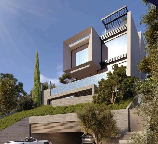 This villa is the perfect example of how architectural simplicity can be combined with complex engineering — integrating the building into the mountain landscape with a bespoke design. The key architectural concept is the breathtaking sea view from every room in the villa, along with an infinity cascade swimming pool.