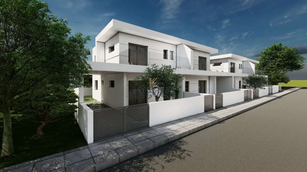 Double – storey House for sale in Xylotymbou area, Larnaca. The asset has internal covered area of 130sq.m and approximately 13sq.m of covered veranda. The property consists of an open plan kitchen, a living room and one guest toilet at the ground floor. At the upper floor, the house belongs three bedrooms, an en – suite shower with W/C and one main bathroom with W/C.