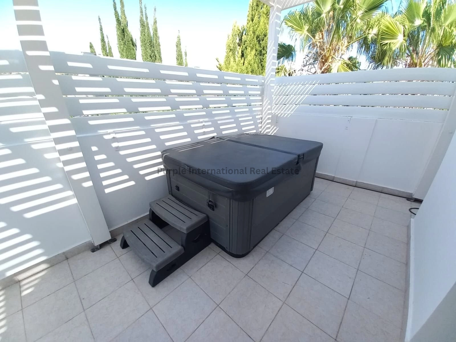 The apartment comes fully furnished, ready for you to move in and enjoy. The open-plan living area leads onto a balcony with beautiful city views, ideal for relaxing or entertaining guests. A private Jacuzzi adds a touch of luxury to your everyday life. Residents have access to a large communal swimming pool for leisure and recreation.