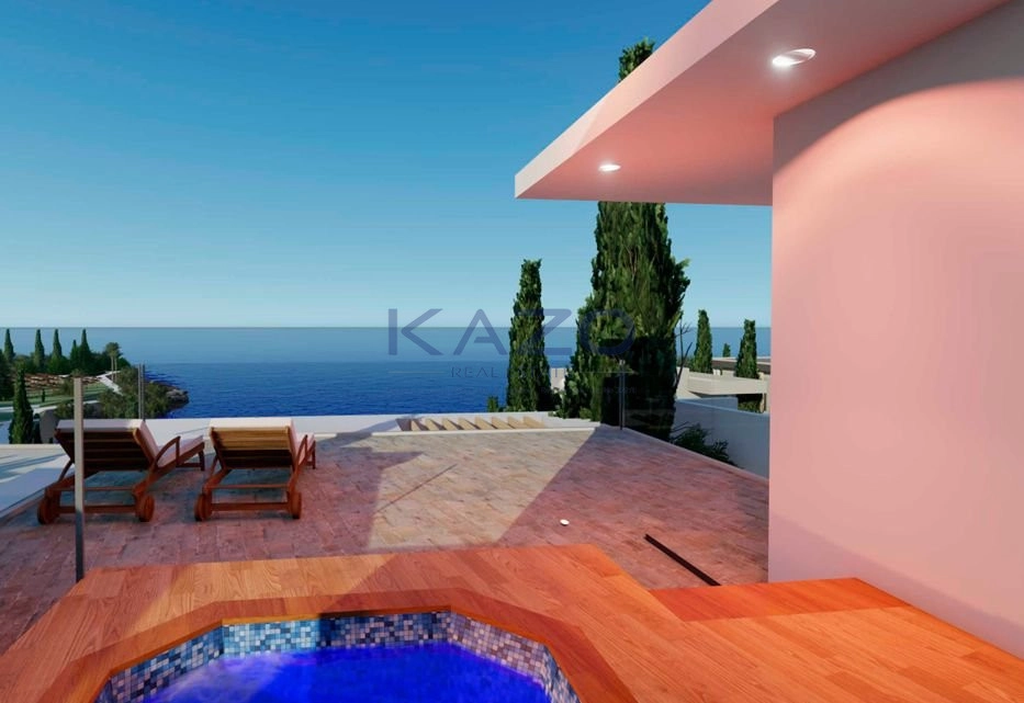 The villa features an open-plan living area, a private swimming pool, and an elevator for easy access to all floors. Large windows allow natural light to flood in and offer breathtaking sea views. Enjoy direct access to the seafront, ideal for relaxing or entertaining guests.