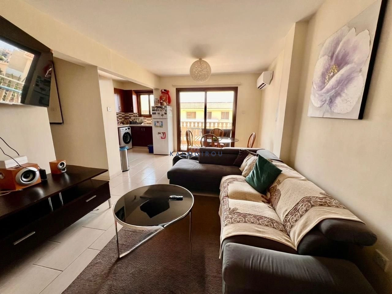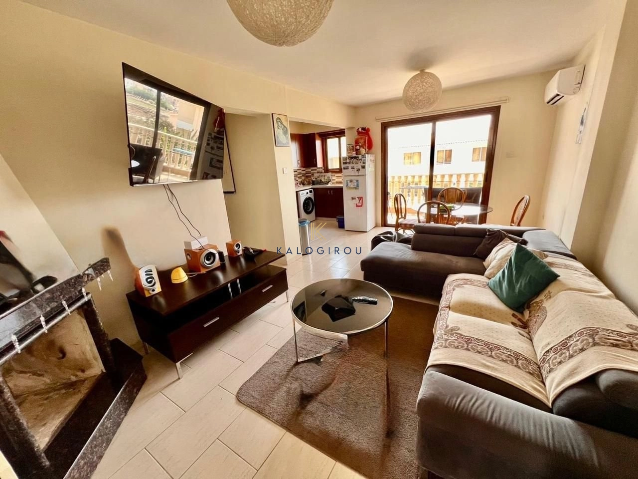 Apartment for sale in Pervolia area. The apartment comprises of an open plan kitchen, living and dining area, electrical appliances, A/C, two bedrooms, one bathroom with WC, covered parking and a veranda.