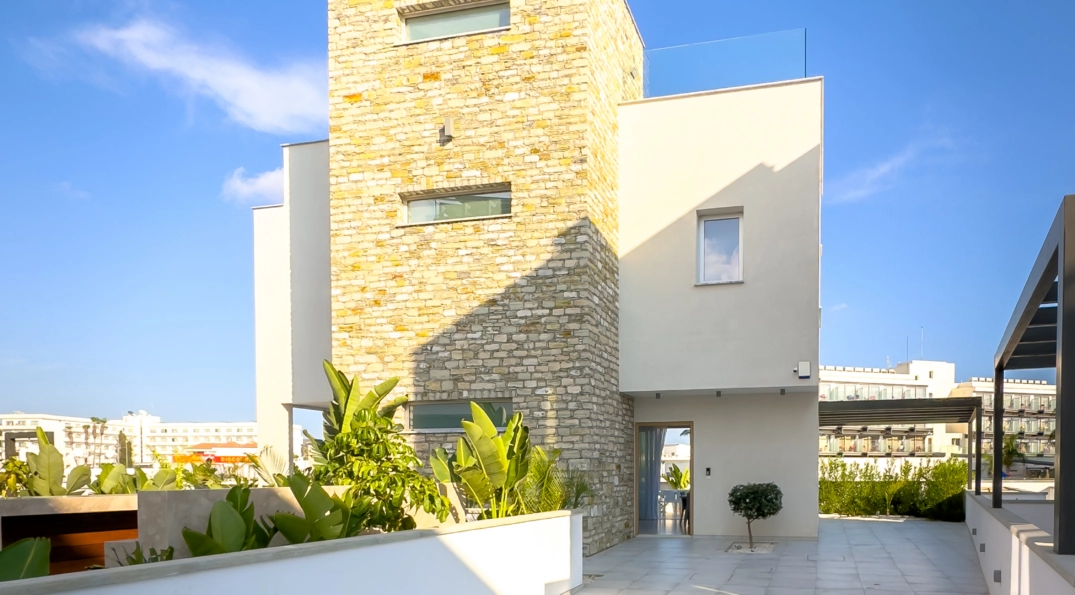 This villa is ideally situated in the heart of Ayia Napa, just a short stroll away from the monastery square and even closer to the sea. Nestled within a secure complex of only eight villas, it offers the advantages of a detached house villa in a prime central location.