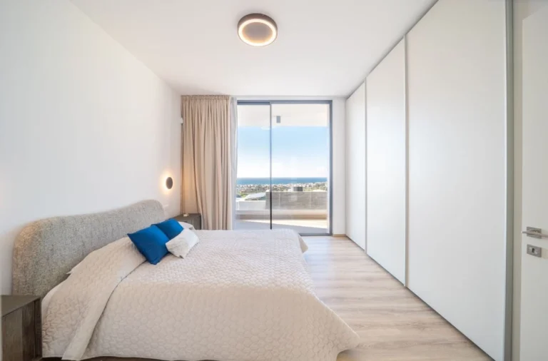 The property offers beautiful sea views and enjoys close proximity to the Mediterranean shoreline, as well as panoramic vistas of the iconic shipwreck of MV Demetrios II and Paphos’ stunning sunsets. Its layout includes a spacious open-plan living and dining area, a fully equipped modern kitchen, and 3 well-proportioned bedrooms—one of which is en-suite. High-quality finishes, expansive windows, and thoughtful orientation allow natural light to flow throughout the home, creating a serene and airy living environment.