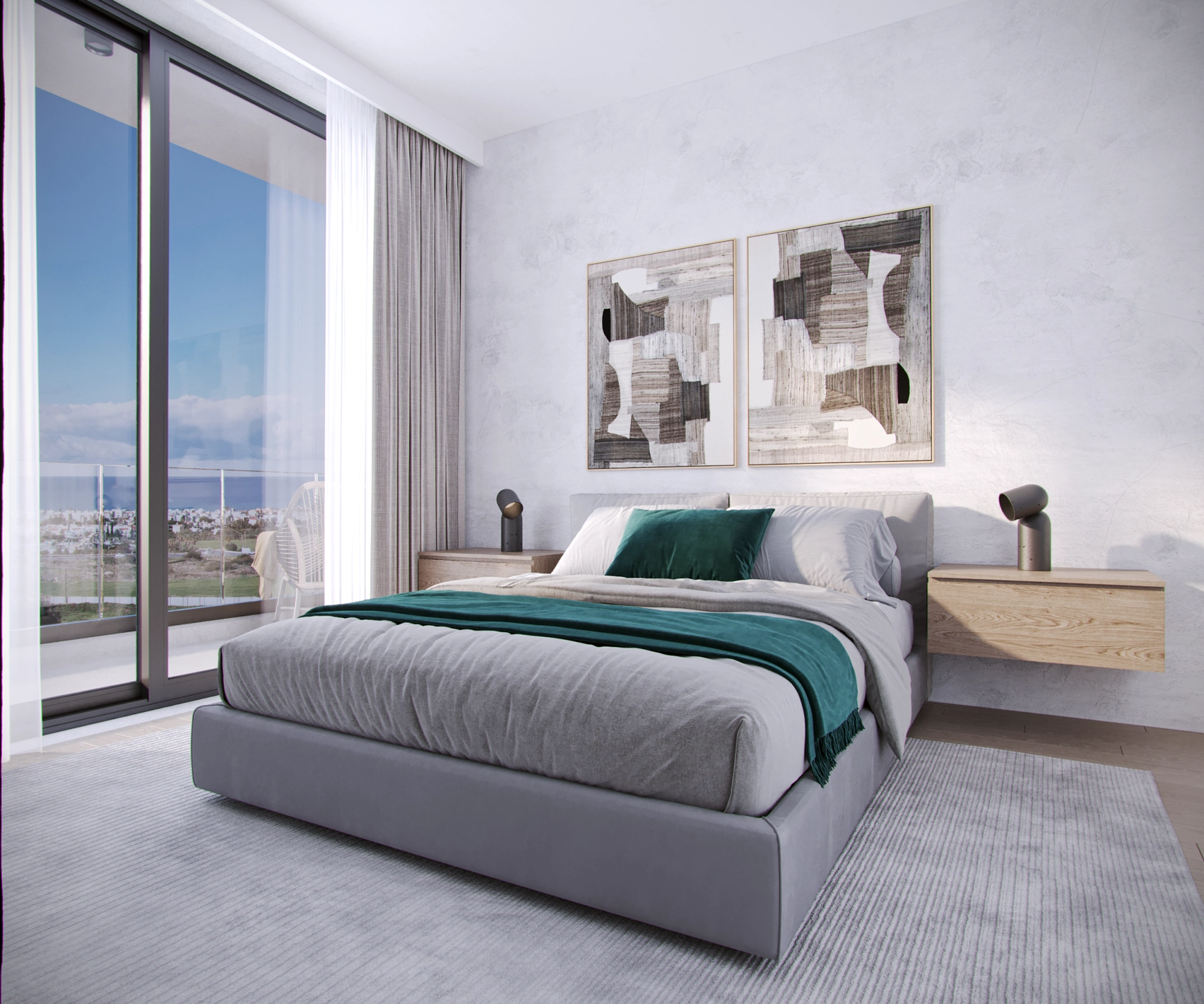 The property offers beautiful sea views and enjoys close proximity to the Mediterranean shoreline, as well as panoramic vistas of the iconic shipwreck of MV Demetrios II and Paphos’ stunning sunsets. Its layout includes a spacious open-plan living and dining area, a fully equipped modern kitchen, and 3 well-proportioned bedrooms—one of which is en-suite. High-quality finishes, expansive windows, and thoughtful orientation allow natural light to flow throughout the home, creating a serene and airy living environment.