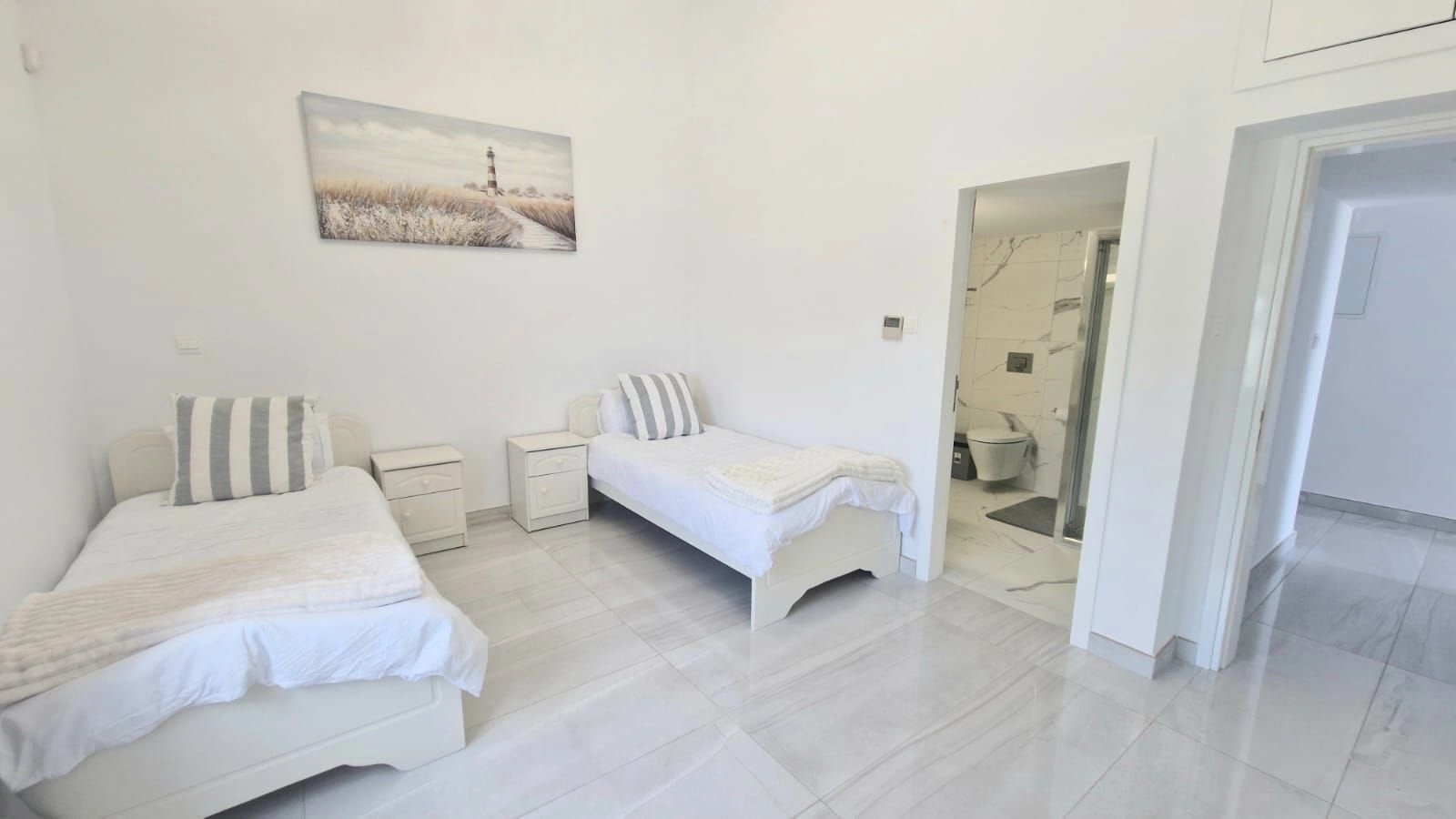 For sale is a key ready, modern detached bungalow, offering generous living space of 244 m². This beautifully designed home features four spacious bedrooms, each with en-suite bathrooms, and an additional guest bathroom. Built in 2024, it benefits from A+ energy efficiency, making it both stylish and eco-friendly.