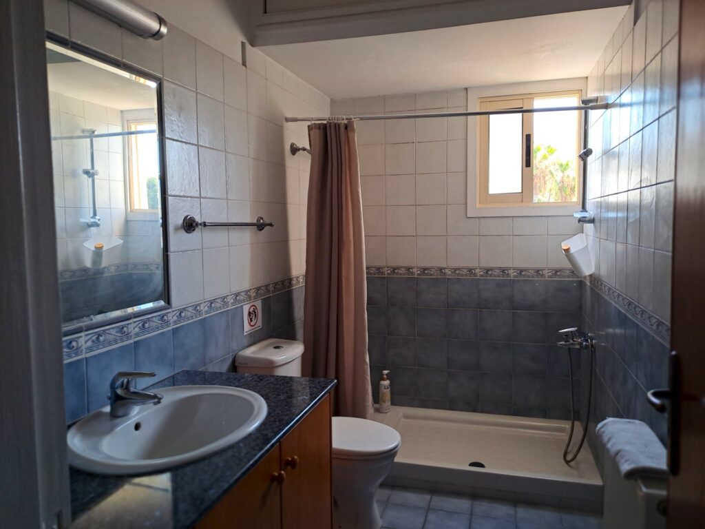 4bdr apartment for rent suitable for family or students or workers. 3km from the sea.The apartment is on the 1st floor. It has 4 bedrooms, 3 WC with 3 bathrooms, fully furnished with beds, side tables, mirrors, tables, chairs. The kitchen is equipped with Induction Cooking stove, big fridge, wash machine and dryer. Every room has AC, a big wardrobe 12-16sqm and a private veranda. Free space for parking outside2-3 cars. Rent 1950 euro per month including communal expenses and internet. Electricity and water are not included.