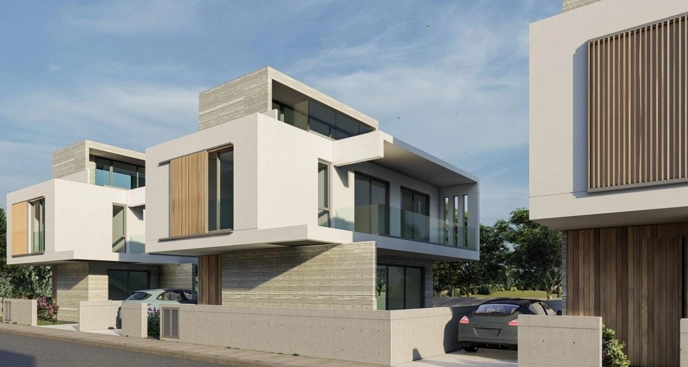 For sale a 3-bedroom modern villa under construction, located in the area of Geroskipou, Paphos. The project is a gated community of 7 villas. The specially designed design blends perfectly with the environment. The house has high ceilings, a warm water floor, a VRF air conditioning system, as well as panoramic windows with a UV filter that let in natural sunlight. Private infinity pool with backlight. Covered garage for 2 cars with the possibility to install electric charging