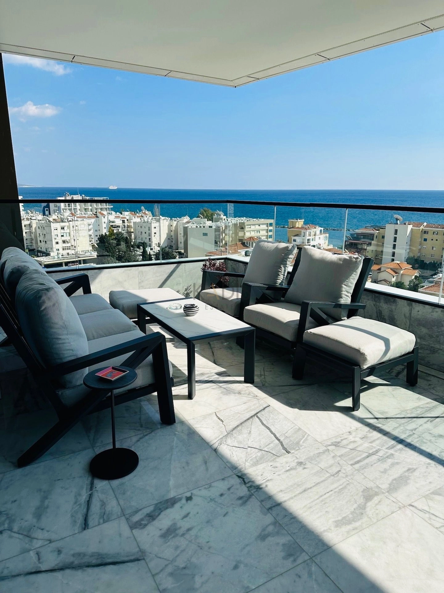 This modern one-bedroom apartment is available for sale in the desirable iconic building in Germasogeia Tourist Area. Offering 74 m² of internal space, the property is located on the 8th floor of a secure, gated complex with 21 stories and convenient elevator access.