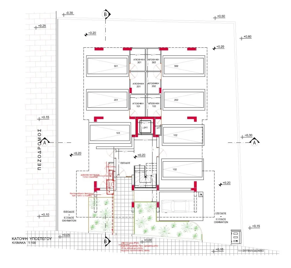 This modern three-storey residential project with gated access is located in the Strovolos area of Nicosia, near the Ethnomartyros Kyprianos Lyceum.