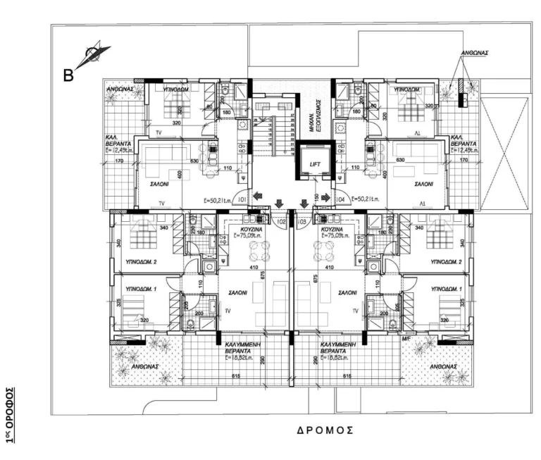 This modern three-storey residential project with gated access is located in the Strovolos area of Nicosia, near the Ethnomartyros Kyprianos Lyceum.