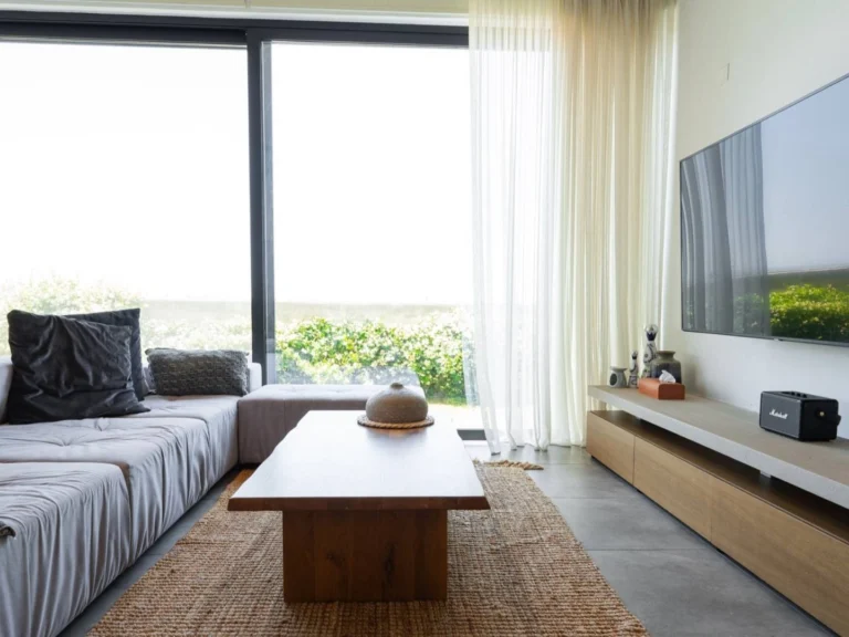 Modern villa for sale in Chloraka. A private swimming pool and an equipped private plot of 390 m2. Quiet area with magnificent sea views. An ideal object for a large family. Bedrooms with panoramic windows and sea views. Spacious dressing room. Furniture for an additional fee.