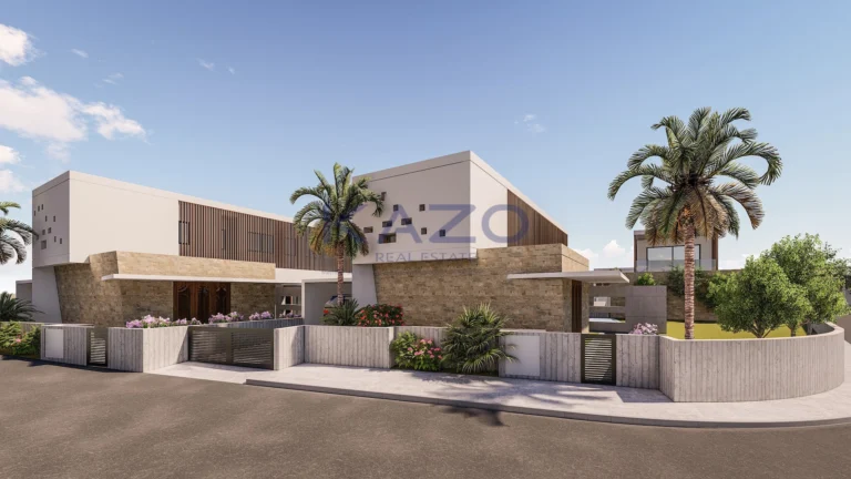 Modern villa for sale in Chloraka. A private swimming pool and an equipped private plot of 390 m2. Quiet area with magnificent sea views. An ideal object for a large family. Bedrooms with panoramic windows and sea views. Spacious dressing room. Furniture for an additional fee.