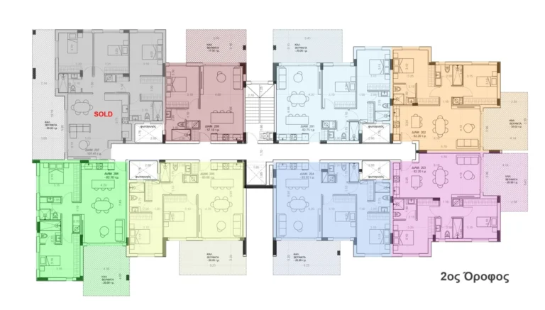 2 bedroom apartment for sale in Kokkinotrimithia, Nicosia. The accommodation is located in a modern residential complex, which includes 16 apartments. The project consists of several floors, each with eight apartments: two with three bedrooms, twelve with spacious double bedrooms, and two with comfortable studio apartments. The complex is located next to the Nicosia Mall, the Neo Plaza shopping and entertainment center and right next to the Zorpas Bakery. There is a direct access to the Nicosia – Troodos motorway, which provides convenient access to the main destinations. The excellent combination of convenient location, well-developed infrastructure and modern design makes this project ideal for both living and investment.