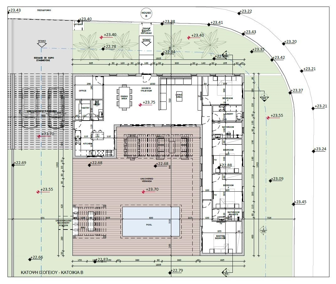 Ideally situated in a serene residential neighborhood surrounded by houses and villas, these homes are just 700 meters from the sea. The architecture is both striking and minimalistic, promising to be a standout feature in the area.