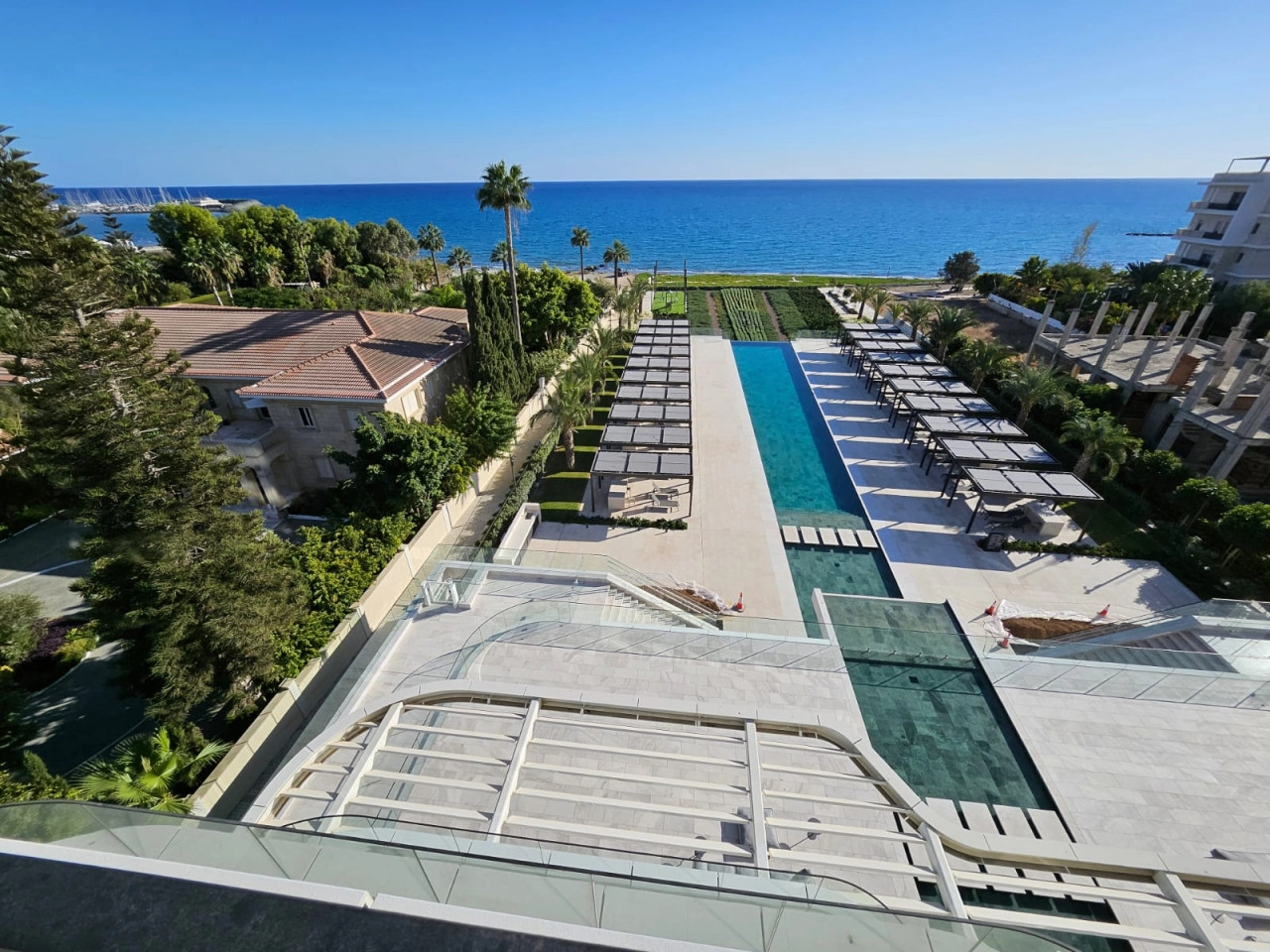 This luxurious 2-bedroom apartment, located in one of Limassol beachfront projects, offers stunning panoramic views.