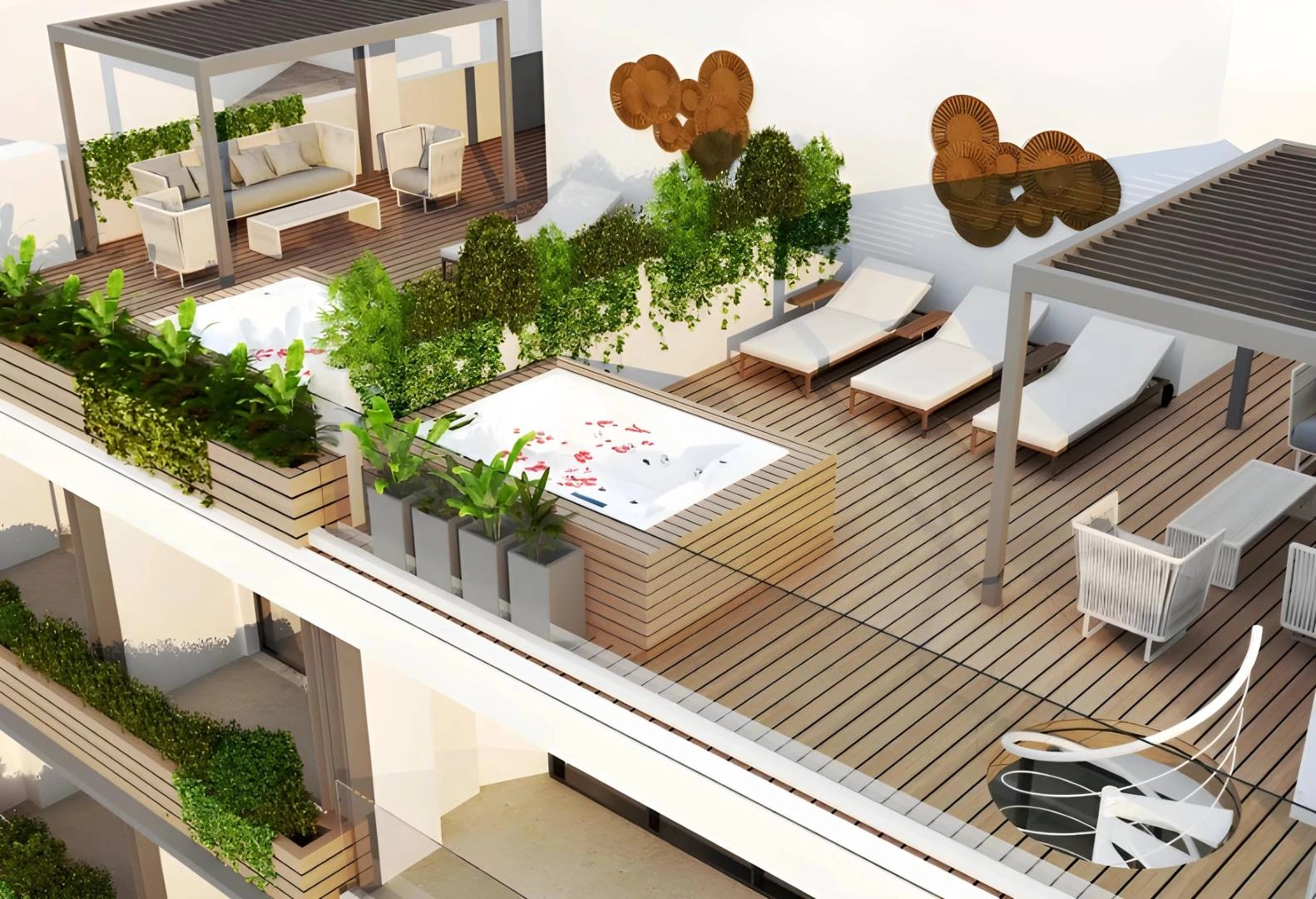 An exquisite penthouse for sale in the center of Larnaca. The complex has 5 floors and 20 apartments, it is the perfect combination of comfort and modern technology. The penthouse has 2 bedrooms and 2 bathrooms, as well as a spacious living room with an open plan kitchen. Built-in wardrobes in the kitchen and bedrooms provide convenient storage. There is a covered veranda and a 43 m2 roof garden with views of the city’s attractions. Windows and doors to the balcony are equipped with double glazing for improved sound insulation and heat preservation. The penthouse is also equipped with solar panels, which helps to reduce energy consumption. The set includes covered parking and a storage room for the convenience of storing personal belongings. All the necessary infrastructure is nearby. The sea is within walking distance. Real estate is an attractive investment in real estate and a profitable investment.