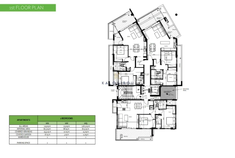 Apartment for sale in Strovolos area, Nicosia. It consists of an open plan kitchen, living, dining area, a main bathroom, two bedrooms, one of them en suite and covered veranda. The apartment is on the second floor with internal covered area of 87.5 sqm and 25.5 sqm covered veranda. In addition, the property has access to a storage room and covered parking on the ground floor.