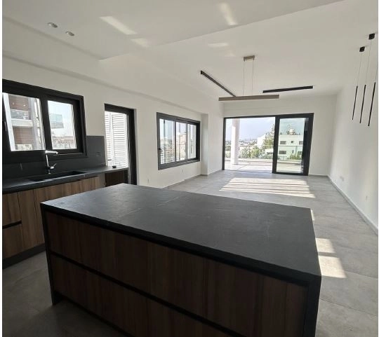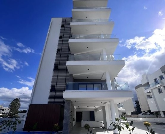 Apartment for sale in Strovolos area, Nicosia. It consists of an open plan kitchen, living, dining area, a main bathroom, two bedrooms, one of them en suite and covered veranda. The apartment is on the second floor with internal covered area of 87.5 sqm and 25.5 sqm covered veranda. In addition, the property has access to a storage room and covered parking on the ground floor.