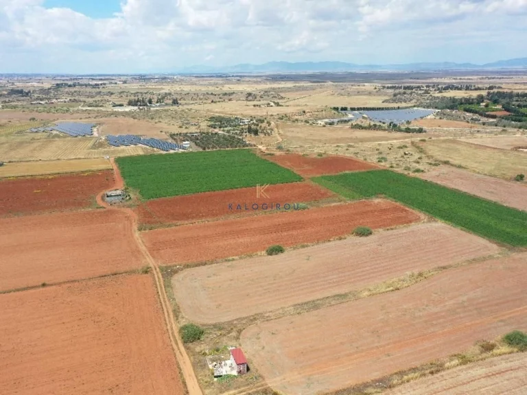 Agricultural plot of 2368 m² for sale in the area of Kokkines, Famagusta. The plot is fenced around the perimeter and features fruit trees, a wooden house of 65 m² with terraces, photovoltaic panels, a greenhouse, and other auxiliary structures. Mains water has been connected and is metered. There is also a private well. Waste collection is handled by the municipality. There is a water tank system with a solar panel.