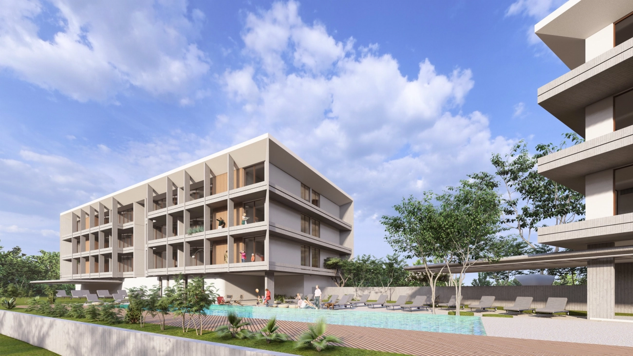 Discover resort-style living in this beautifully designed residential complex, ideally located in the sought-after seaside area of Kapparis. Comprising two modern buildings, the development blends contemporary architecture with Mediterranean charm, offering residents comfort, convenience, and a relaxed holiday atmosphere all year round.