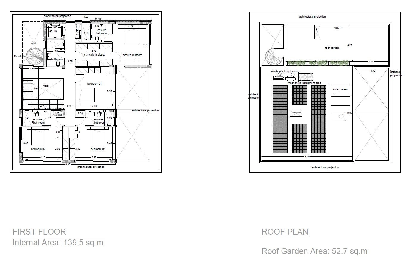A five-bedroom, three-storey villa with a private infinity-type swimming pool, offering an internal area of 272,7 m², is situated on a 1324 m² plot.