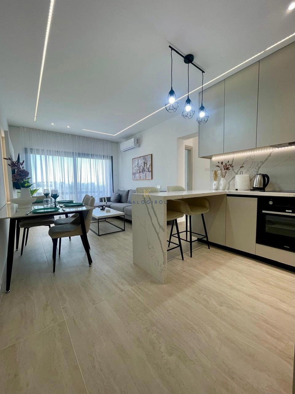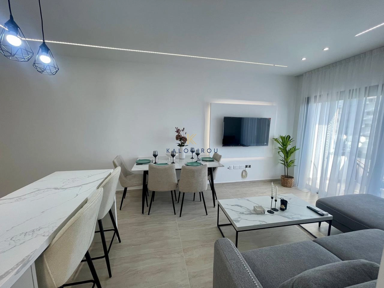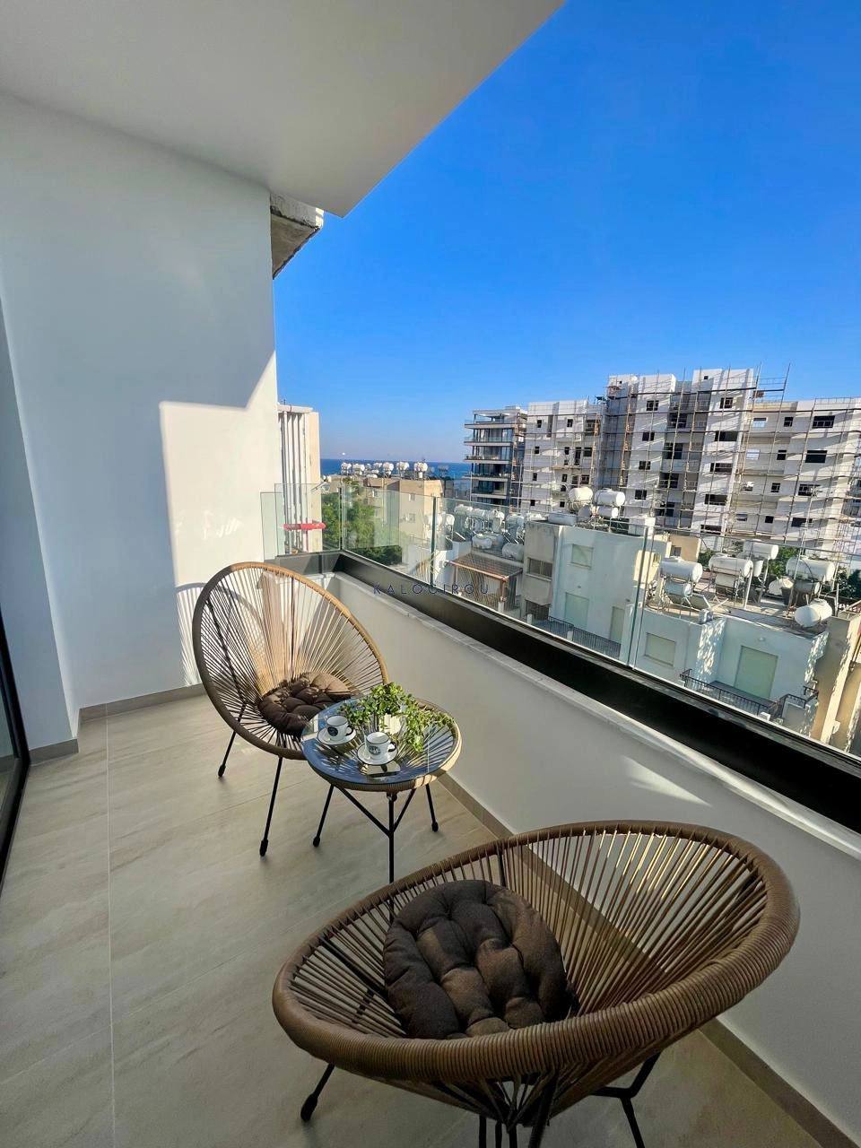 Fifth floor apartment for sale in Makenzy Larnaca. It is fully renovated & equipped with a/c split units. The flat consists of an open plan kitchen-dining-living area, a main bathroom with shower and wc, three bedrooms and covered balcony. Internal covered area is 72 sqm and covered balcony is 6 sqm.