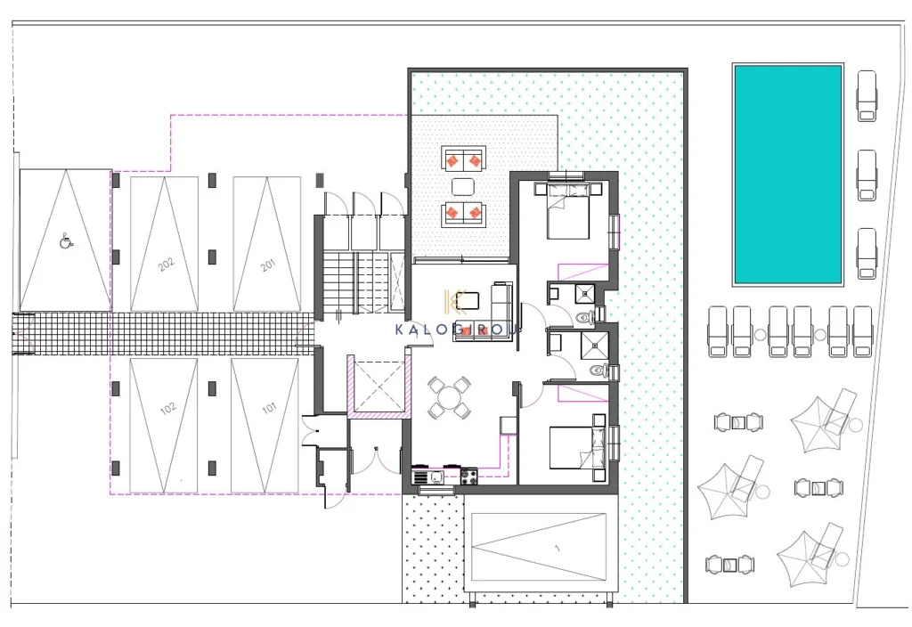 The project is set on an elevated plot and enjoys sea views. It comprises just five exclusive two-bedroom apartments, thoughtfully designed to offer comfortable, functional layouts that make the most of the space. Each apartment includes spacious interiors, generous covered balconies, a private garden for the ground-floor residence, and private roof gardens for the top-floor apartments. Each apartment is available in a variety of high-quality finishes. This energy-efficient development, rated Class A, also offers a communal swimming pool, dedicated parking for each apartment, disabled access, and an elevator.