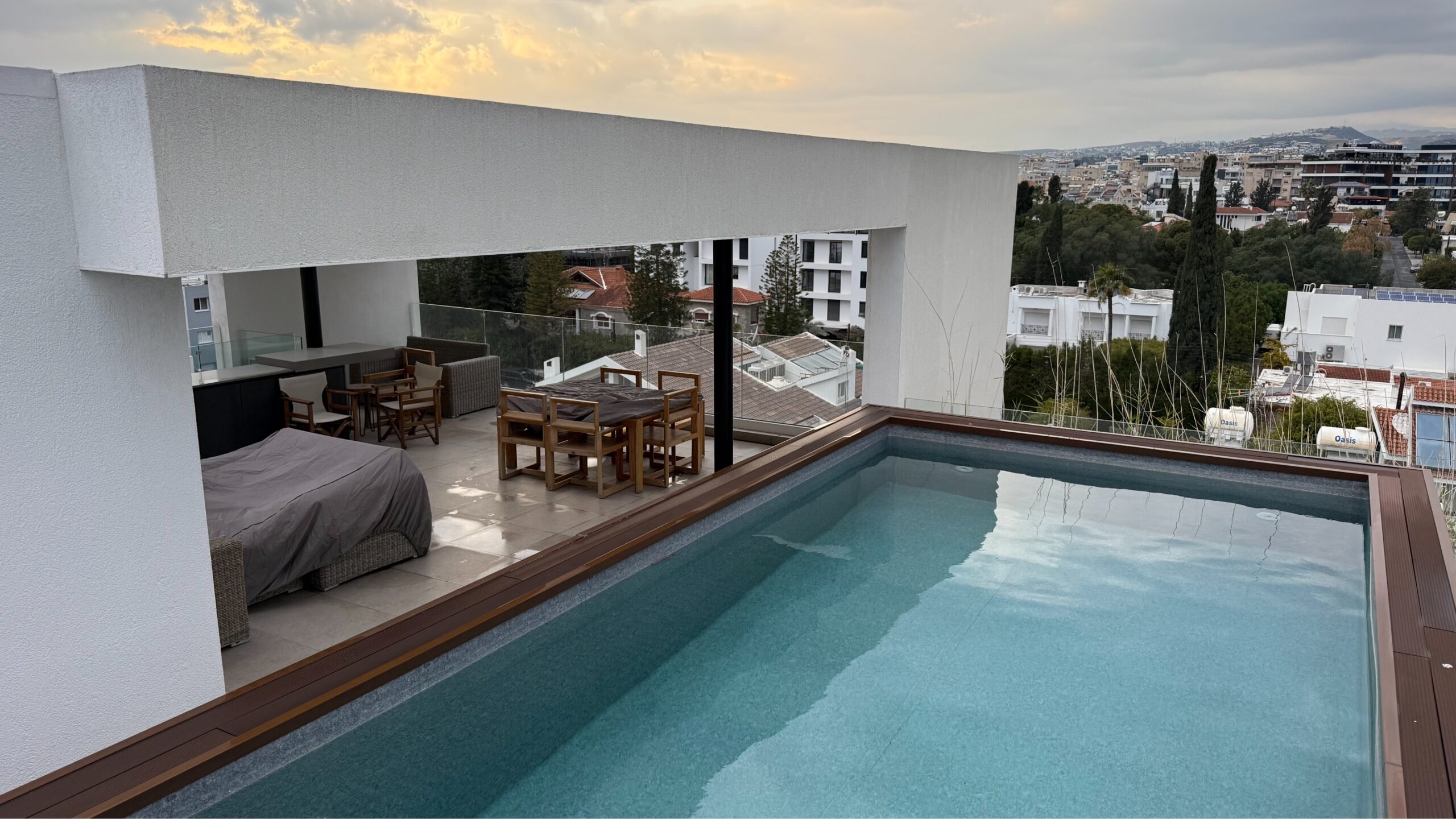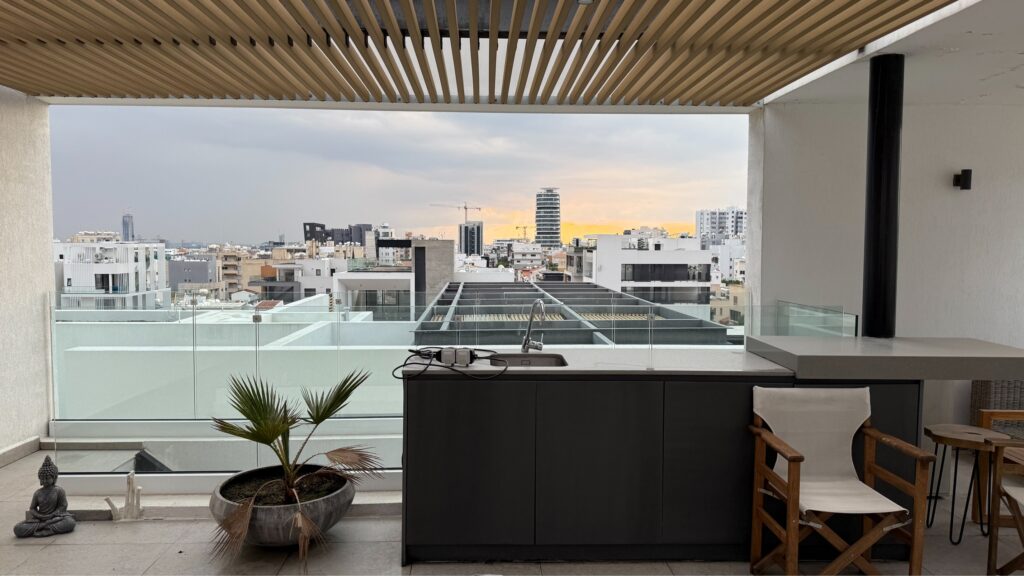 Fully furnished and fully equipped Penthouse for sale in a quiet and convenient neighborhood. Located close to Lanitio Lyceum, in immediate proximity to Riga Fereou and Makariou Avenue, right in the heart of Limassol, walking distance to pharmacies, supermarkets, and restaurants, and just 1.5 km from the beach, this home is perfect for anyone looking for comfort and convenience. There are 3 bedrooms, 3 bathrooms, a 3 x 6 pool, heated water floors, a VRV system, and a roof terrace with a barbecue area. The total covered area is 172sq.m (The internal area is 137m2, the covered veranda is 35 m), a storage room, and a 110m2 roof terrace. The penthouse comes with title deeds and was completed in 2019. The penthouse has one covered parking space and a private storage room on the ground floor. The main entrance of the building is secure and camera-controlled.
