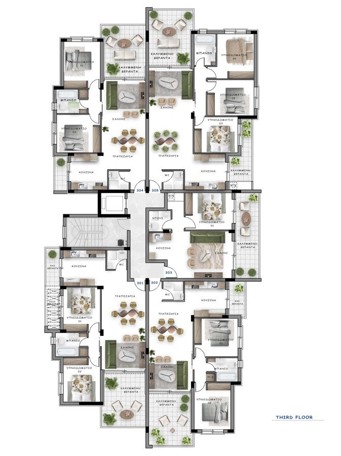 These spacious 3-bedroom apartments are designed to accommodate families or those who need more space, with thoughtfully planned interiors and quality craftsmanship. The layout includes three generously sized bedrooms, a master with en-suite bathroom, a family bathroom, an open-concept kitchen and living area, and a large veranda. Abundant natural light, elegant finishes, and functional storage ensure both comfort and style.