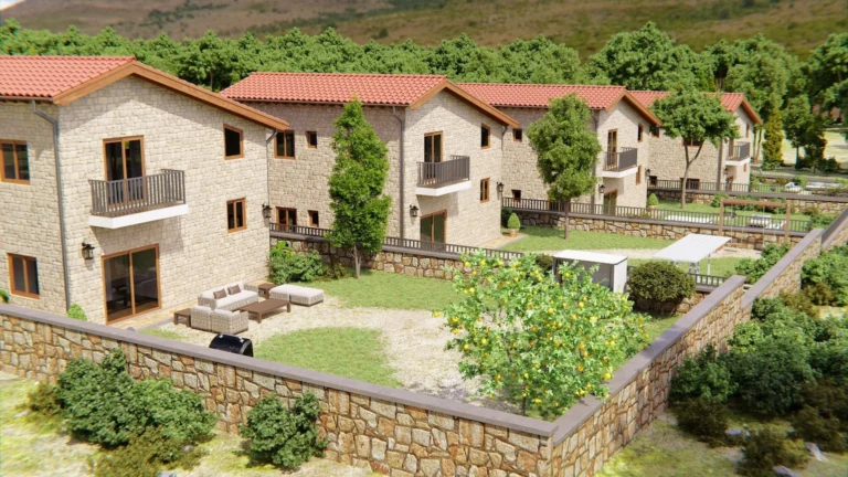 Beautifully landscaped gardens provide tranquil outdoor spaces, including private gardens ideal for relaxation or activities. Optional private swimming pools are available. Each villa also features a covered terrace with outdoor dining and barbecue facilities, perfect for enjoying the Mediterranean climate.