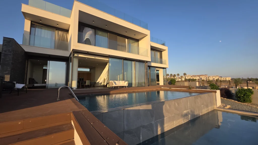 For sale is an exclusive three-bedroom villa in the Paphos area, located right on the first line by the sea in the heart of the tourist zone, close to the archaeological park and the lighthouse. This brand-new villa has never been used and comes fully furnished, featuring underfloor heating, air conditioning, covered parking, a rooftop terrace, and a barbecue area. The villa offers panoramic sea views and stunning sunsets, with easy walking access to sandy beaches, the harbor, the promenade, restaurants, and shops. With high-quality finishes, modern engineering solutions, and a prestigious location, this property is not only a luxurious home for comfortable living but also an attractive investment opportunity with strong rental potential.