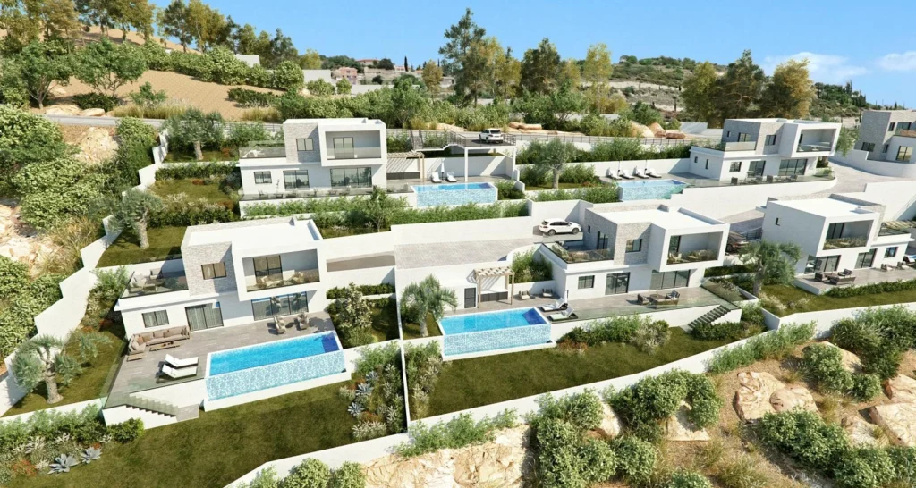 3 bedroom villa for sale in an exclusive project located in the serene mountains of Tsada. The villas enjoy an excellent location, a beautiful quiet getaway, but at the same time are conveniently located close to the cultural and entertainment options of Paphos, making them the right choice for those seeking a unique lifestyle on the island of Cyprus. Energy efficiency A. Photovoltaic system. Full thermal insulation. Swimming pool, external shower. Water pressure system, hidden plumbing. Air conditioning and underfloor heating. Security system with video surveillance. BBQ area. Private parking for 2 cars.