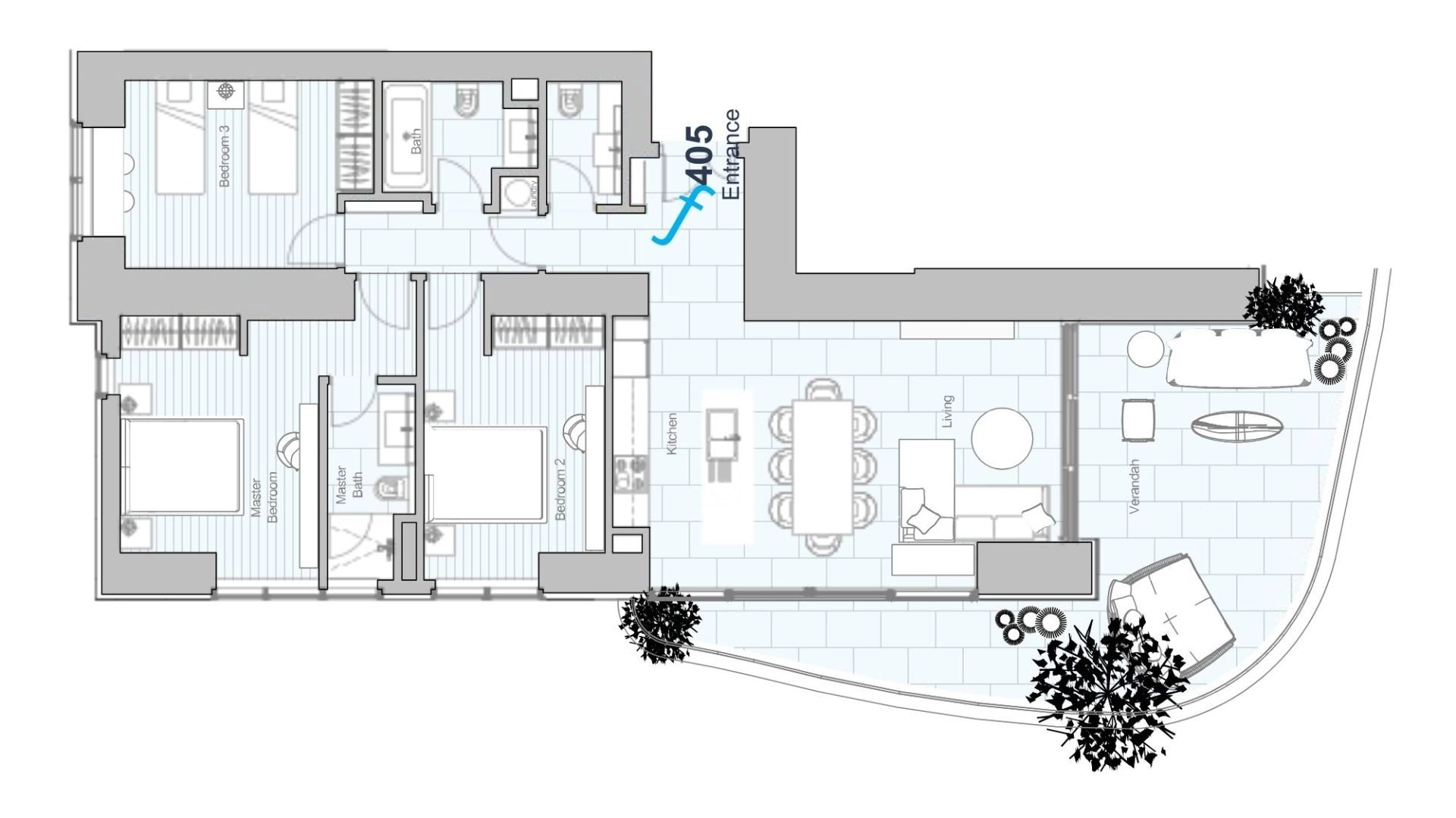 The thoughtful layout includes an open-plan living and dining area, a modern kitchen, three generously sized bedrooms including a master suite with a private bathroom, and expansive outdoor space ideal for relaxing or entertaining.